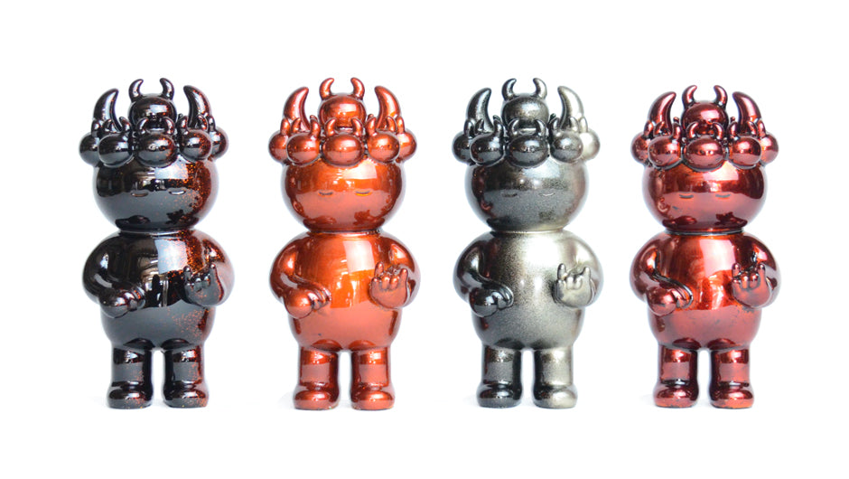 ウアモウのソフビに漆を使って5種類の色に仕上げています。色漆のみならず、色のついた乾漆粉を蒔くことで、より美しい発色が実現しました。1セット限定!