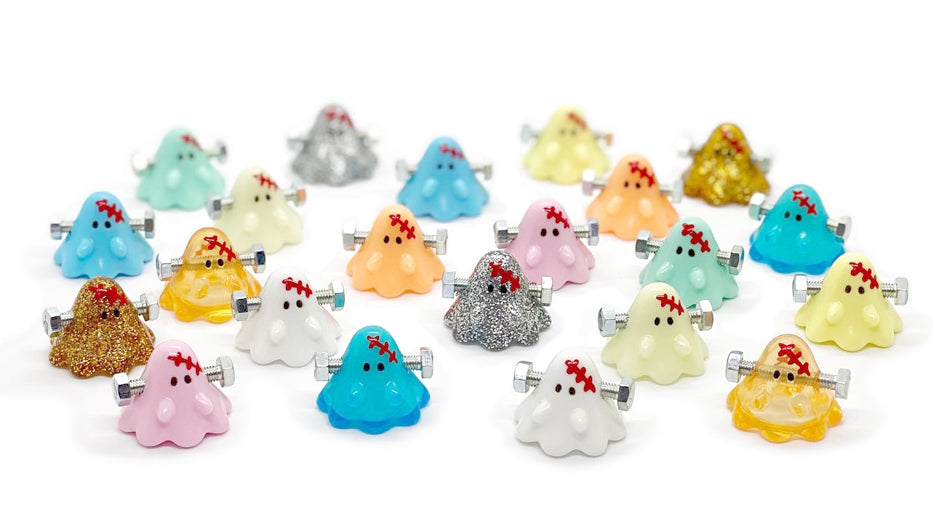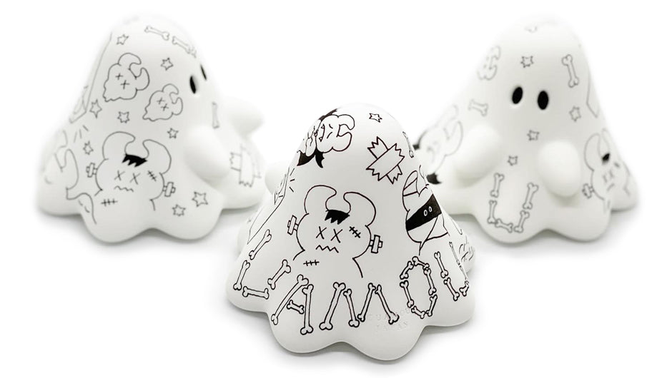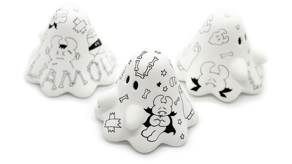 ビッグおばけちゃんに高木綾子がウアモウモンスターズを描き付けた一点物や、色とりどりのフランケンおばけちゃん達が登場!