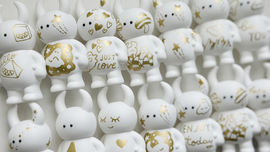 The Denim Series, which expresses the texture of the fabric through a combination of exquisite coloring and hand-painted stitching by the artist, is available in three characters: Boo, UAMOU, and Dino UAMOU.