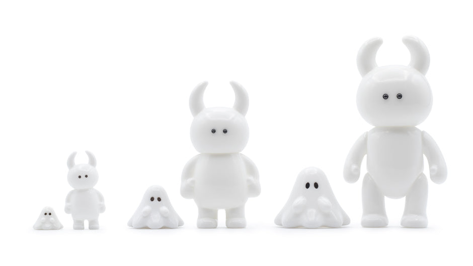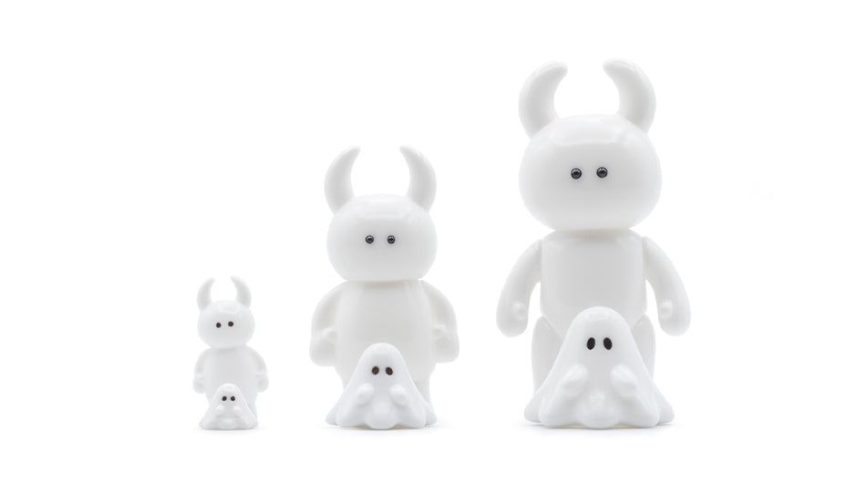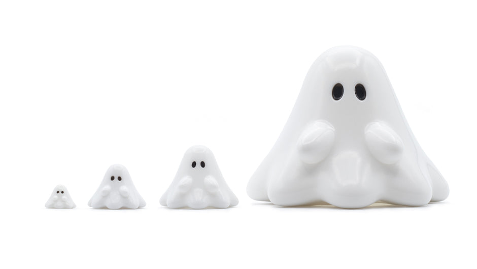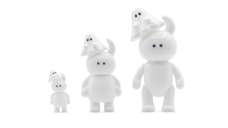 おばけちゃんのソフビに新しいサイズが加わりました。ミニ(1cm)、スタンダード(2cm)、ビッグ(8cm)に続き、今回は3cmのミッドサイズ。スタンダードより少し大きな「3cmのおばけちゃん」はアドベンチャーウアモウにぴったりのサイズ感です。