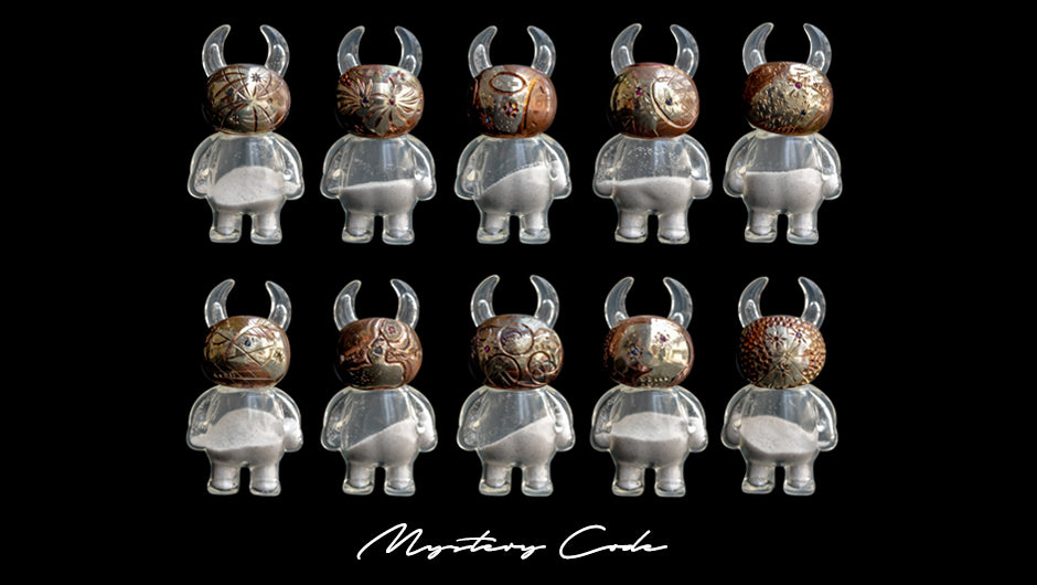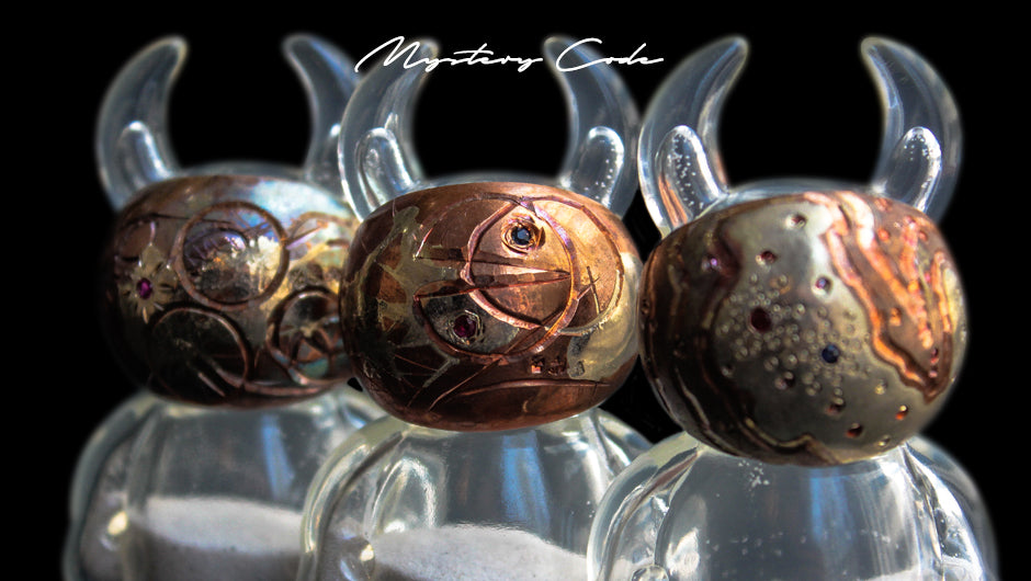 “Mystery Code” is a limited series of 40 Masked Uamou from the mind of Minoru Takagi. The surface of the copper masks are decorated with splashes of Silver and set with Sapphire and Ruby stones. Each mask features an original hand-chisseled pattern by the Master himself which makes this series of Uamou truly unique. You can find the Mystery Code series on the dedicated page in our ONLINE STORE