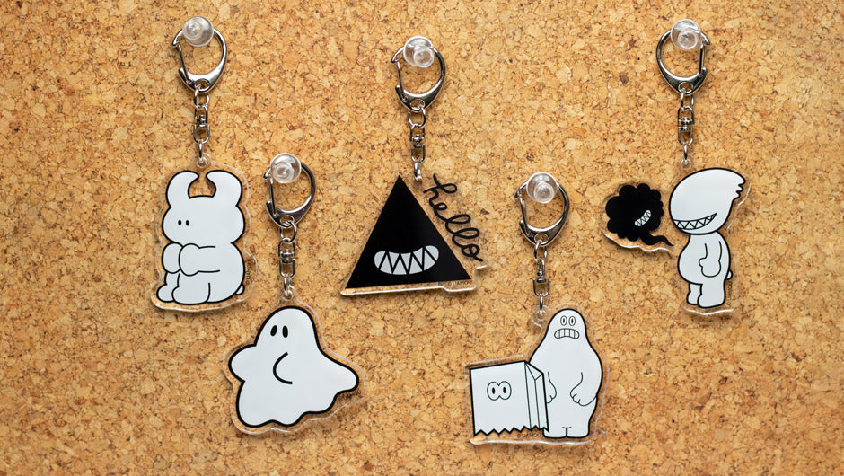 STUDIO UAMOU's Gacha Machine, which had been empty for about half a year, has been filled with new products, Acrylic Keyrings! There are 5 kinds of patterns: "Kangaeru" UAMOU, Boo, Bastard, Mr. Dump, Hello, and Tetra. Available only at STUDIO UAMOU and UAMOU ONLINE SHOP!