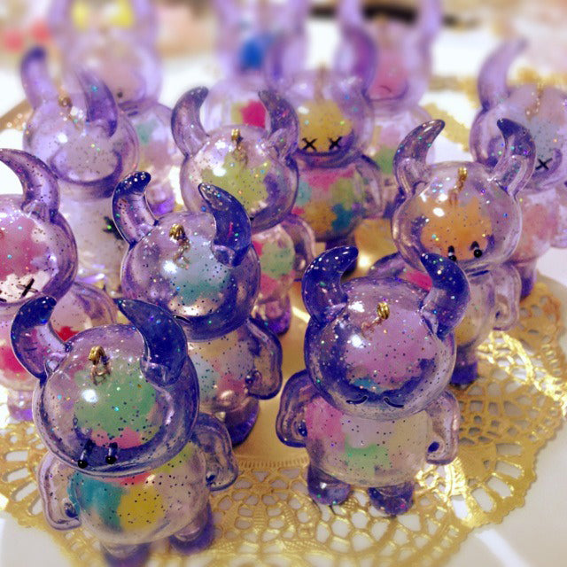 Ame Ameさん限定のUAMOUのソフビの素体カラーは、イメージカラーである紫をベースにラメを入れた特別仕様です。