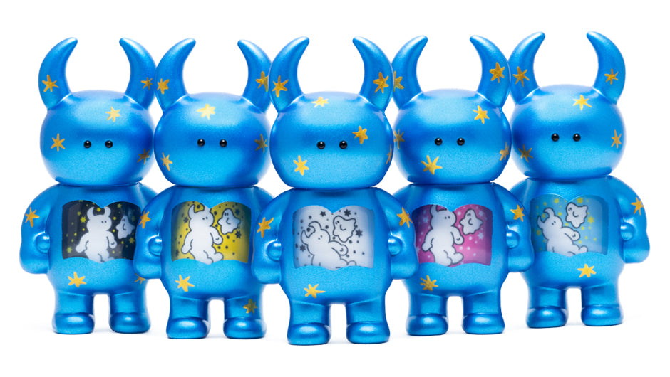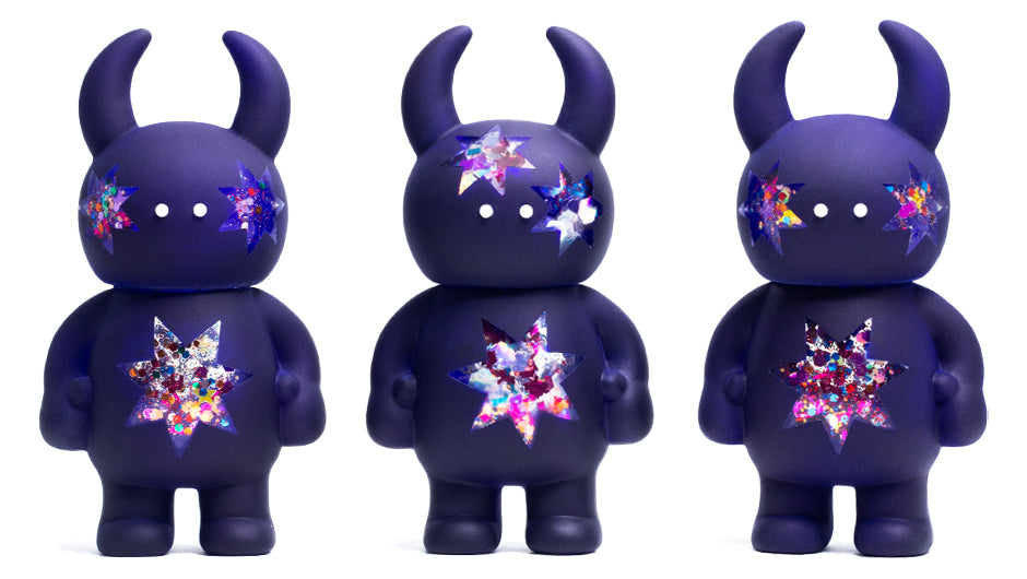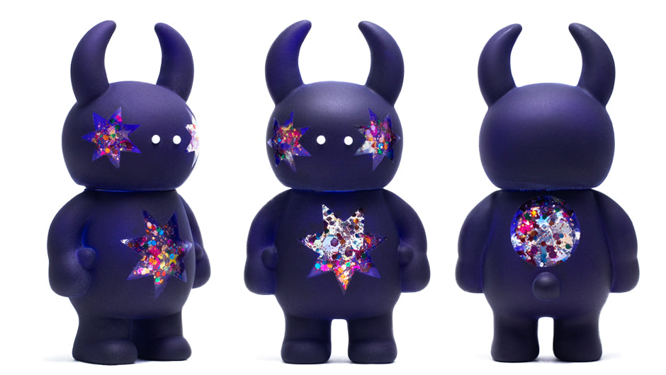 "Kaleidoscope UAMOU" is colored in matte navy, with four windows on its cheeks or forehead, tummy, and back.