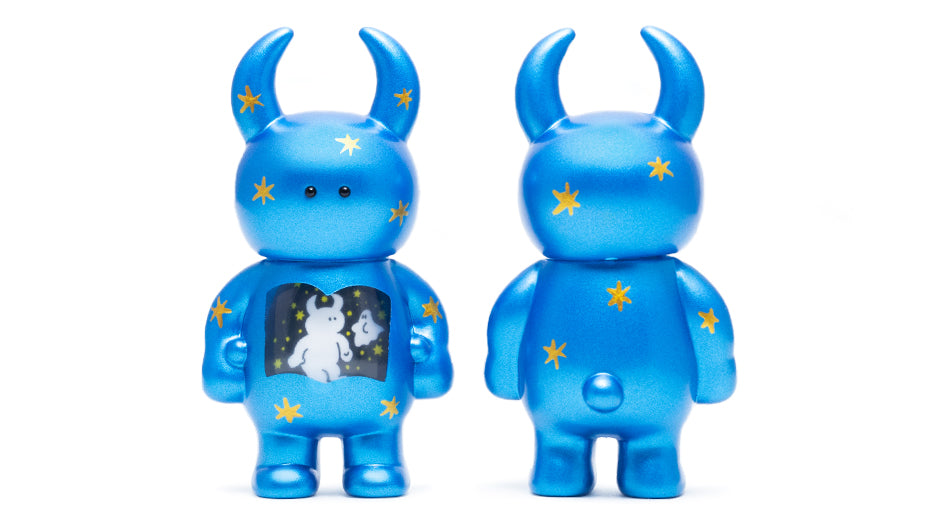 Book UAMOU, a long-selling product exclusive to Jimbocho Ichinoichi, is now available in a new pattern. You can see UAMOU and Boo staring at each other through the window opened on its belly. Golden stars hand-painted by the artist Ayako Takagi twinkle on the twilight metallic body.