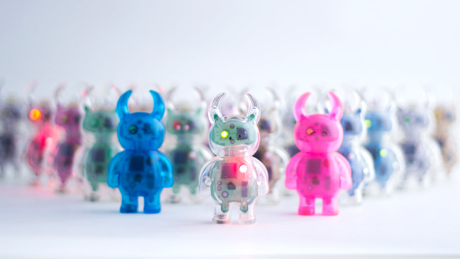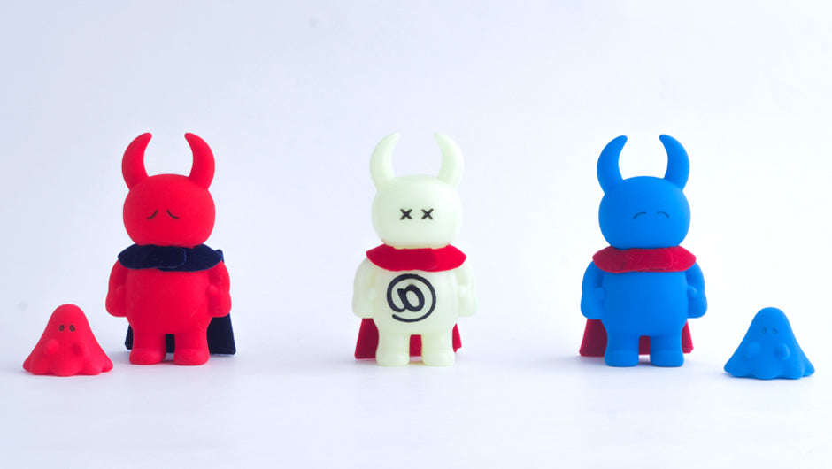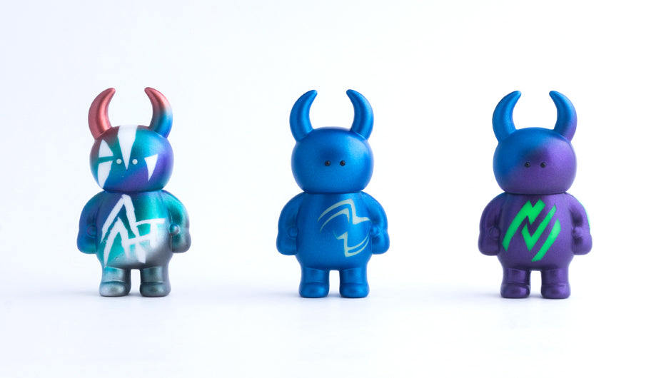 William Greenawalt has made a series of HERO UAMOU bearing the ATAT mark on the chest and equipped with cool little capes that are posable to give them the dramatic look of a super hero overlooking the cityscape. Danté Carver worked on a colourful set of COSMIC TRIBAL UAMOU featuring original body designs on matt and metallic colour-ways.
