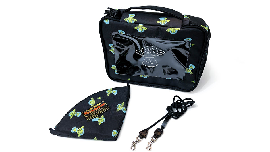 The first two items are pouches produced by Natal Design using custom fabric, the design of which was developed from the "UFO" design.