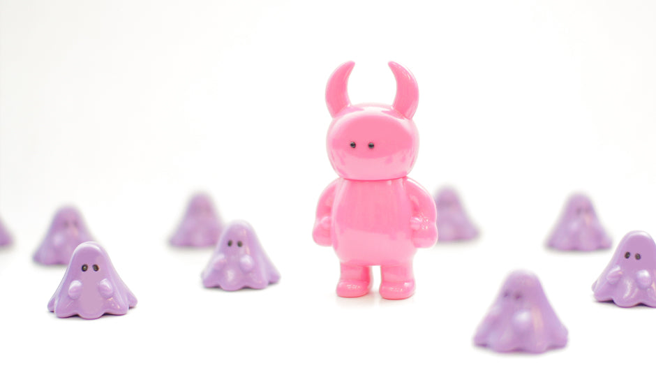 Bubble Gum Uamou is the new colour-way for the Uamou sofubi series. The soft and gentle color combination of Pink and Purple lends itself perfectly for the pairing of Uamou and Boo and it makes us want to blow bubblegum bubbles all day.