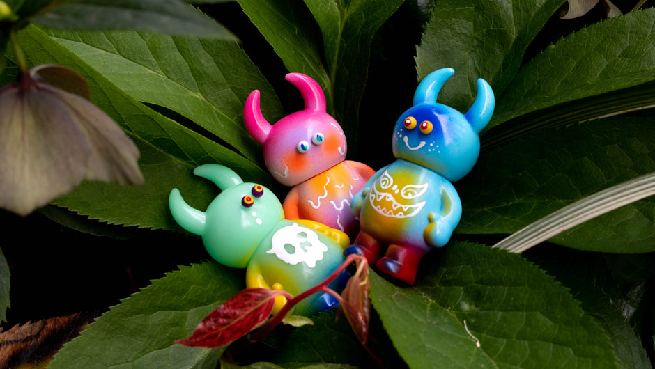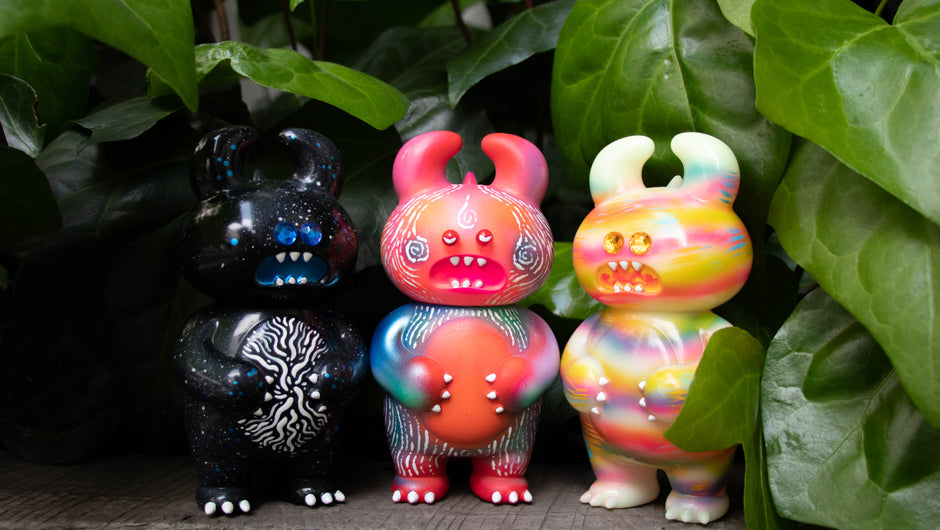 He made one-offs using only Uamou and Boo last year and this year, Dino Uamou and Mr. Dump & Hello were added to the lineup and that means he got a little bit larger canvas to output his imagination.