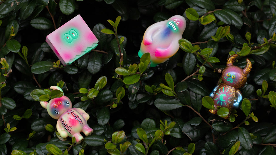 シルクスクリーンプリント作品、コミック、ソフビなどを主に展開。