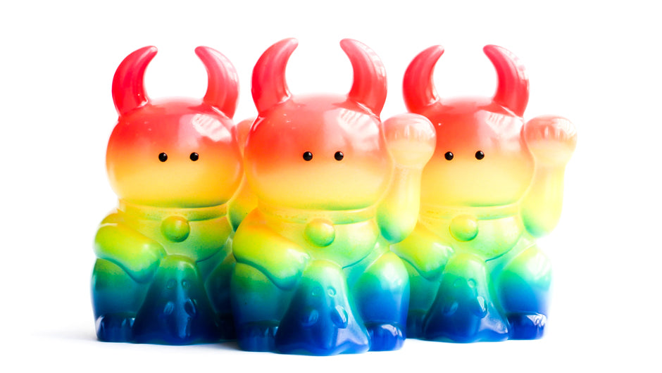大人気のレインボーシリーズに、新たに「キャンディーレインボーシリーズ」が仲間入り! 後藤彩色所の後藤博氏の手により、乳白色成型のソフビが、おいしそうにカラフルに染まりました。(※食べられませんのでご注意ください)
