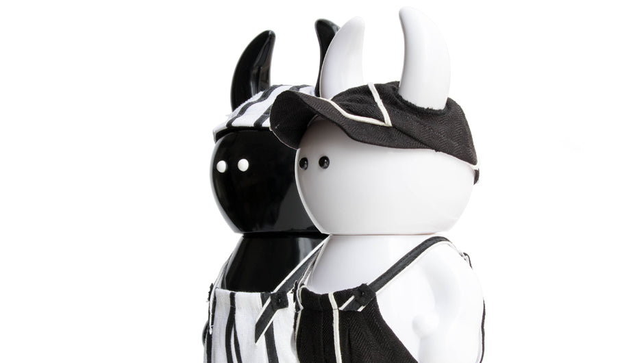 Following to her first and second piece, "Amorosi" and "Briganti", Annelies de Ridder comes back with a very cool and modern edition of Big Uamou “Salt 'n' Pepper”!  Clothed by the Master herself, both Uamou come in a custom-made costume consisting out of a cap and overall.  They look alike as a twin but in fact they have unique clothes each other that illustrate their different personality well.