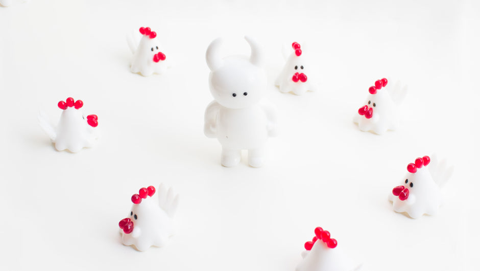 Our supporting artist Kayoko has created a complete new brood of chicken Boo and we are very happy to announce that they will be exclusively available at our Atelier Shop starting today! Each Boo figure has been carefully customised and comes inside a cute capsule shaped like an egg !