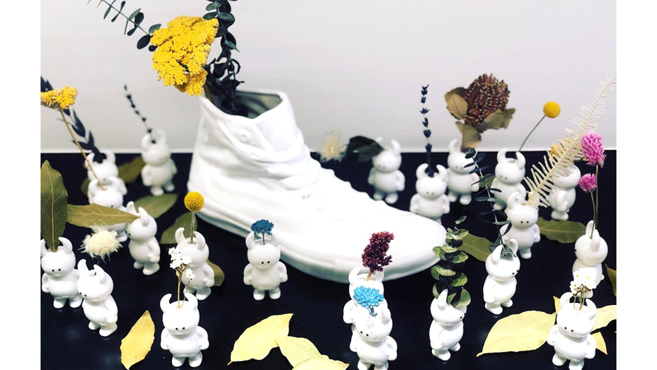 またコンバースの不朽の名品『ALL STAR/HI』を原寸大で形どった花器が手に入るのも、渋谷店のみ。