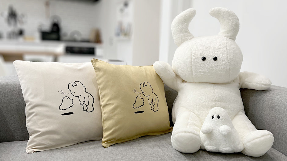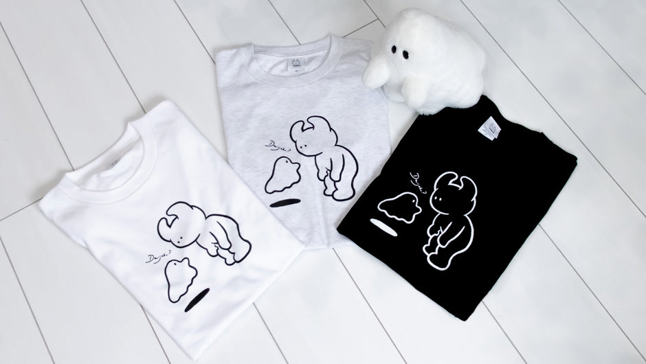 The first batch of apparel pre-sold at UAMOU LIMITED SHOP in Osaka has now arrived. The T-shirts are made of 95%-100% cotton, which is gentle for sensitive skin and is thick enough to retain their shape and not become saggy quickly. The cushion covers are made of moderately firm and sturdy canvas fabric.