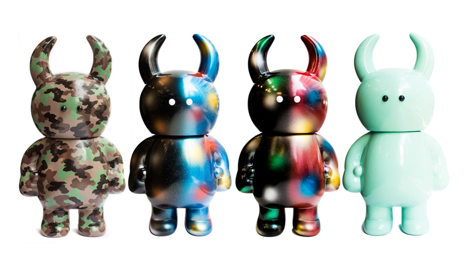 Take a look at these fantastic exclusives! Camouflage Big Uamou, hand painted by Ayako Takagi in a classic Woodland pattern and a series of Half Galaxy Big Uamou (both available in red version and blue version) painted by master Goto will be available in limited quantities.