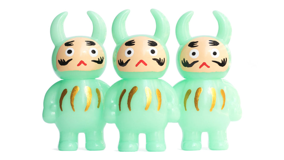 The start things off we would like to announce the arrival of "Daruma Uamou (Mint GID ver.)" hand painted by Ayako Takagi, "DCon 2017 Uamou / Boo / Fortune Uamou / Bastard / Real Uamou" painted by Master Goto as Ayako directed, and new colour way of "Mr. Dump & Hello set" which may reminds you of a famous sport team when they get together!