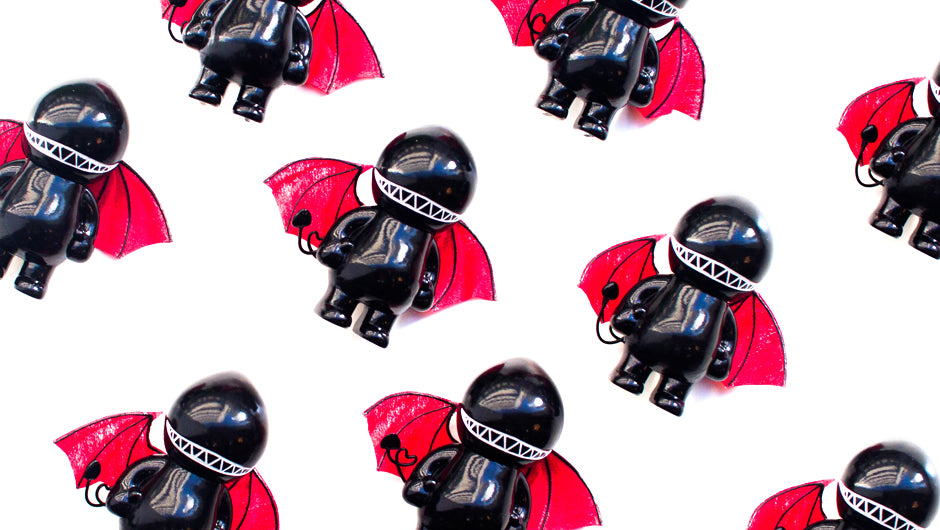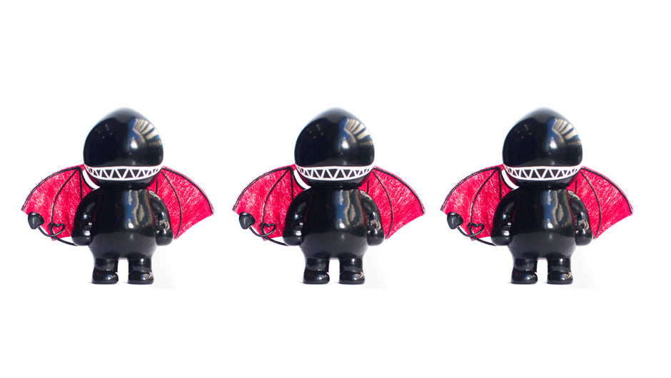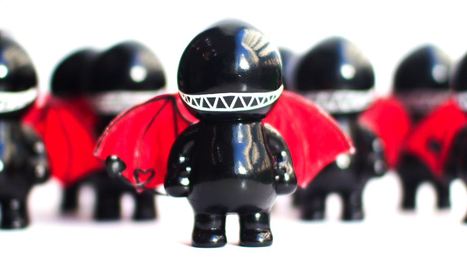 Well, Devil Bastard is here now and he is determined to show us all how to properly be a fearsome devil. His dark appearance and big ironic smirk are strongly accentuated by the the bright red devil wings. He is the real deal... or so he thinks.