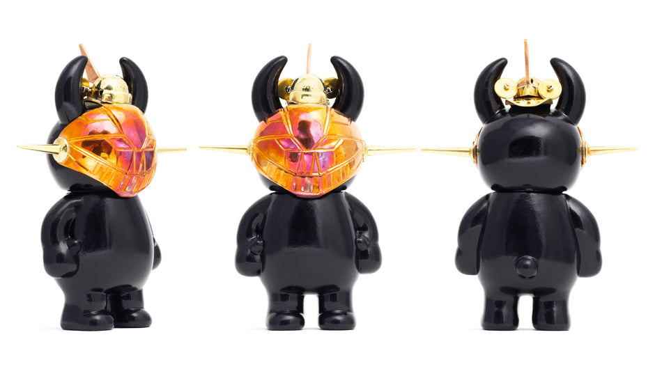 The Mazinger Z masked Uamou is part of the long running Masked Uamou series created by a jeweler, Minoru Takagi. Even within the masked series this particular entry is quite particular. The masked is shaped in a rectangular fashion accentuating the features of Mazinger Z. The mask is carefully hammered into shape and engraved in high detail including a tiny Hover Pilder resting on top of the mask. Please come and see his mesmerizing work in person!
