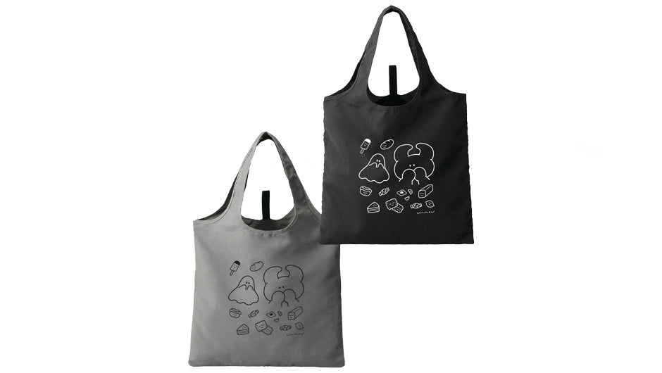 そんなふたりがプリントされたエコバッグが、黒とグレーの2色で登場!