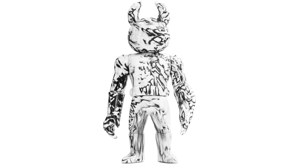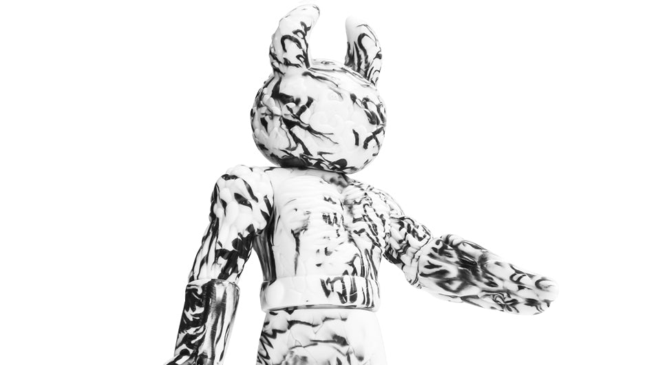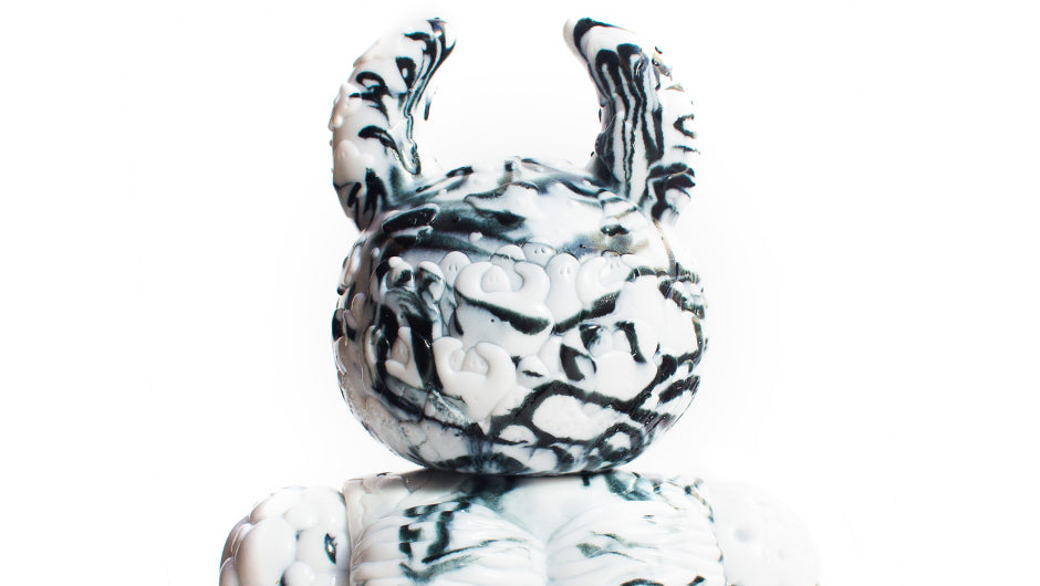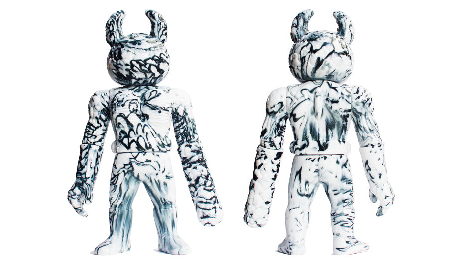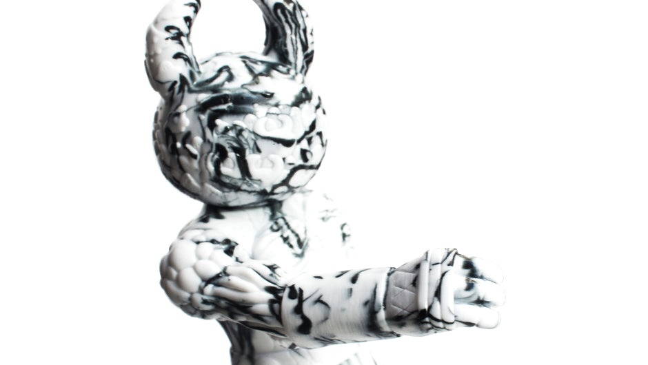 We mixed black and white vinyl in the casting process to create a unique marble pattern. The process makes every single Real Uamou truly unique. This edition of Real Uamou comes both with inter-changeable classic Boo Armour and the recently released Strong Arm in a unique set well worth waiting another couple of days for.