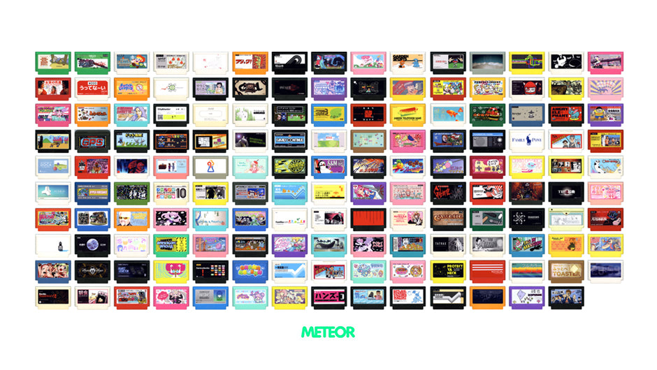 Each year, designers, videogame lovers and 80′s nostalgics worldwide are invited to submit their own 8 bit Famicom game. Sakagami prints all entries and pastes them on physical famicom cartridges to be exhibited at METEOR in Kichijouji until the end of May.