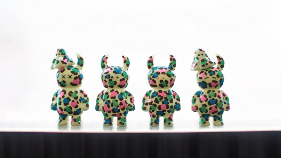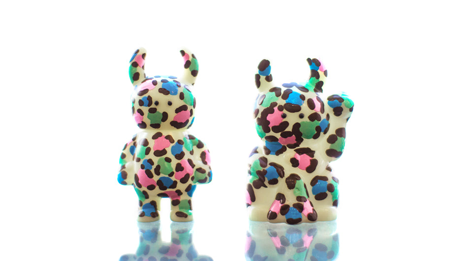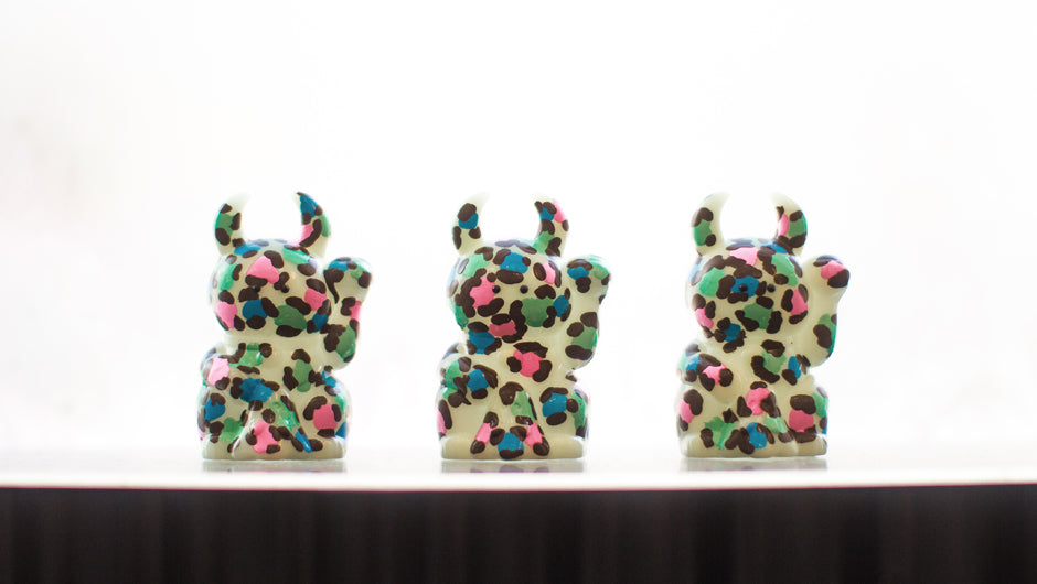 We have created a limited run of “New Wave Leopard” Uamou sofubi (Uamou, boo and Fortune Uamou) to be featured on the show. This series of GID Uamou feature a hand-painted leopard pattern in bright and showy colours and the series will be accompanied by a slightly larger run of “New Wave Matte” coloured bastards.