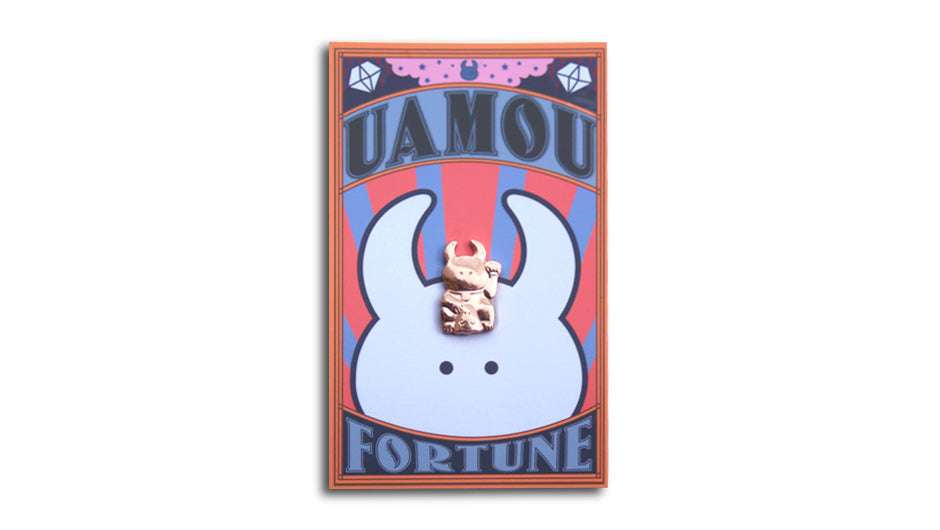 ソフビフィギュアのフォーチュンウアモウの形を、高さ1.8cmで再現した金属製の『お守りフォーチュンウアモウ』が新登場!! お財布・コインケース・クリア成型のソフビフィギュアの中など、身の回りのいろんなところに置いて、福を呼び入れるのにお使いください!(お金を招く右手ではなく、人を招く左手を上げている仕様となっております)