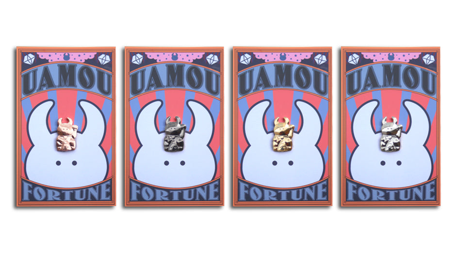 Available in Gold, Silver, Bronze and Black, these tiny charms are perfect representations of the classic Fortune Uamou. To be carried in your bag or wallet, the charms will grant the bearer a significant boost in the luck stats. Alternatively the charms can be placed inside your favourite clear sofubi or used as a decoration.