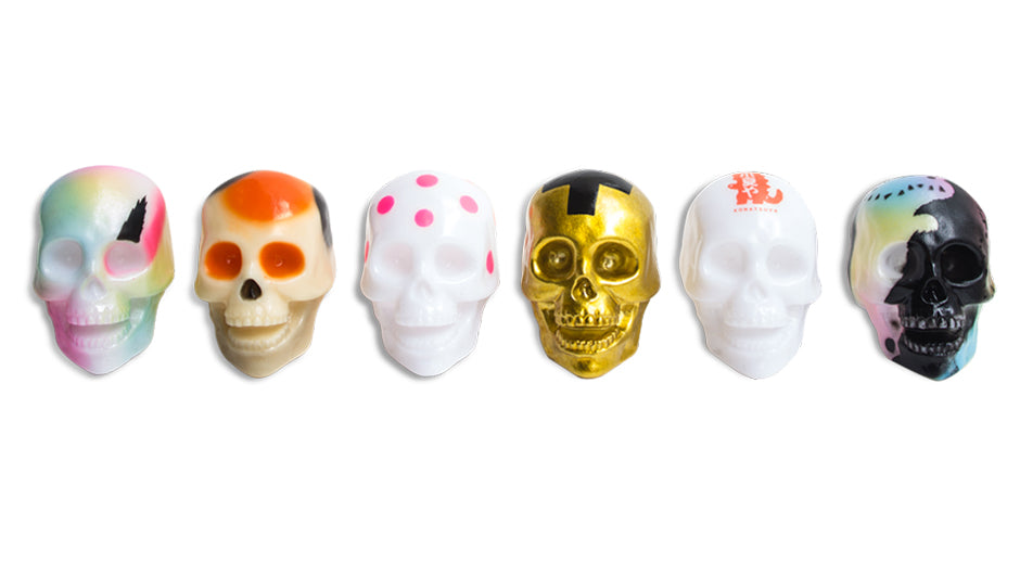 UAMOU・KONATSU・SHOKO NAKAZAWAの3アーティストによる6種類のスカルソフビが、