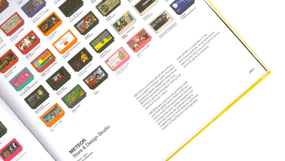 Studio Uamou’s Creative Director Niko Lanzuisi is a big fan of METEOR, so much so that he makes it a rule to always participates in the FAMICASE exhibition. It is no surprise that Meteor’s yearly FAMICASE exhibition was featured in “Every Day is Play” because of its celebration of the classic famicom-era label design. What did come as a big surprise though is that a tiny bit of Niko’s copywriting about Meteor made it into the book as well.