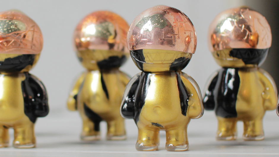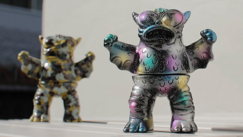 For the exhibition we have created a custom painted series of Masked Bastard (featuring handmade masks by Minoru Takagi) and a small run of camouflage painted Fortune Uamou and Grease Bats. Furthermore you will be able to find original artwork by Ayako Takagi as well.