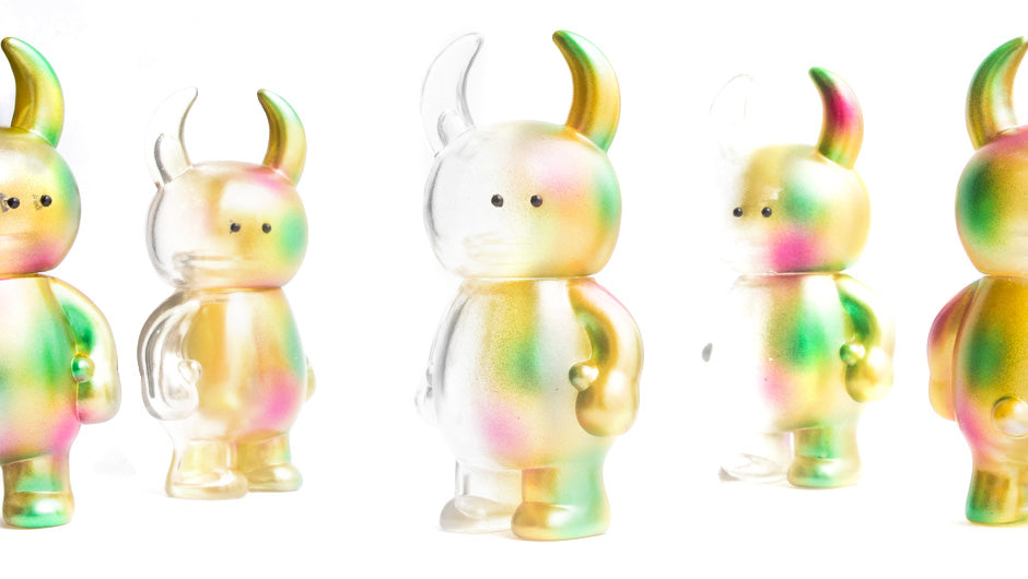 This custom colour-way is rendered on a Clear body leaving half of the figure exposed. Master Goto decorated this series with Pink and Green accents on a Gold base-colour and we are very pleased with the result.