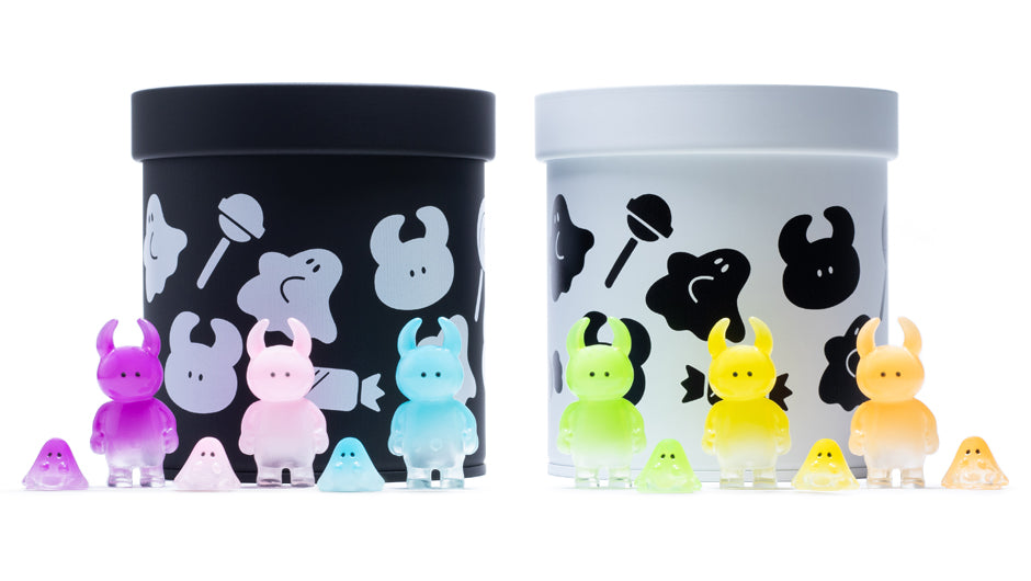 UAMOU Canister and Jelly Beans mini-sized figures are now available in three forms: (1) Canister alone, (2) Mini Sofubi Set, and (3) Canned Mini Sofubi set.