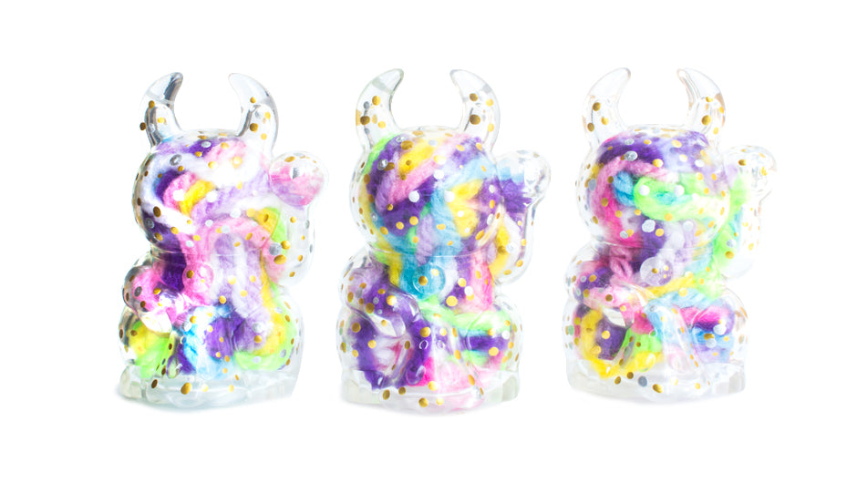 Decorated with hand painted gold dots by Ayako Takagi, the dazzling Party Fortune Uamou is filled with colourful strings and released to commemorate the 7th year anniversary of Kaiju Blue.