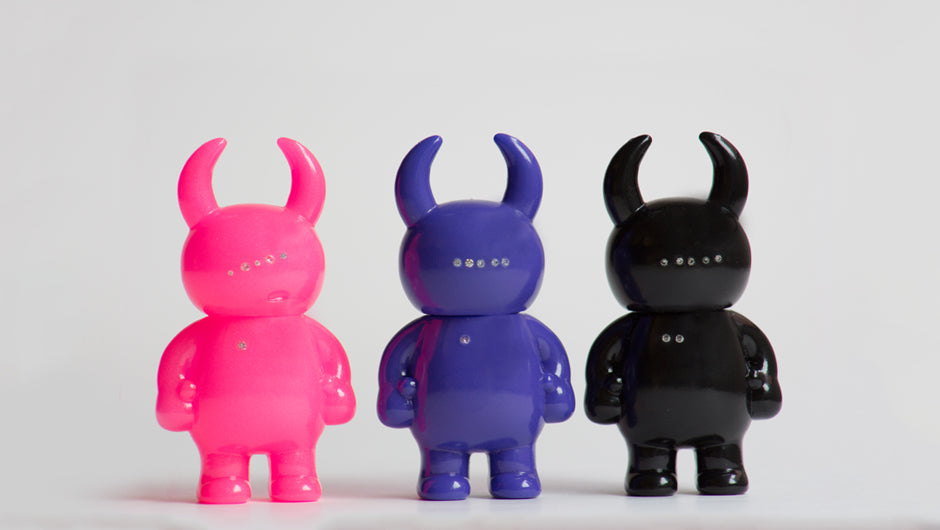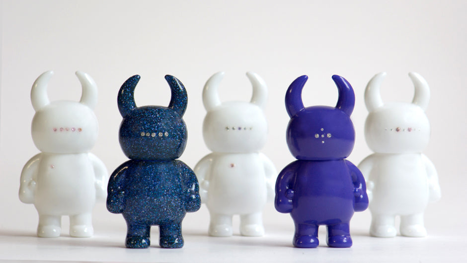 「キラキラウアモウ」ソフトビニールフィギュアに直接石留めされたジルコニアの石。石留め職人ならではの作品が完成しました。