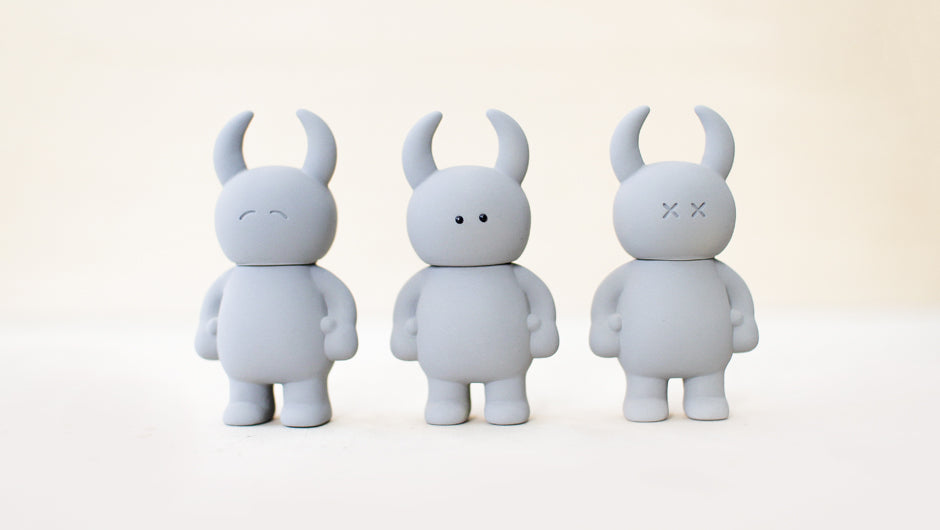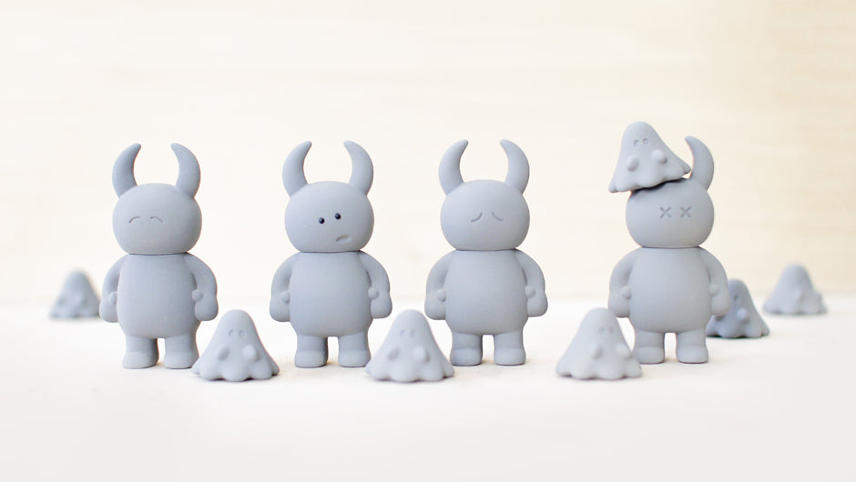 This limited edition run of matte painted figures come in a beautiful Taupe Gray and they appear as if they have been chiselled from stone. Classic Uamou, Uamou & Boo sofubi sets and Bastard are available in the Stone Colour-way at the Atelier Shop right now. Since this is a very small run we would like to advise our customers outside of Japan to make inquiries via info@uamou.com