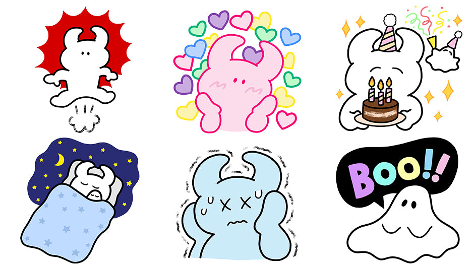 UAMOU'S LINE stickers set has been refined and re-released! The sticker set is packed with lively UAMOU and Boo with their rich expressions. The 40 stickers and UAMOU's telepathy will help you tell your various feelings.