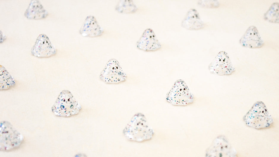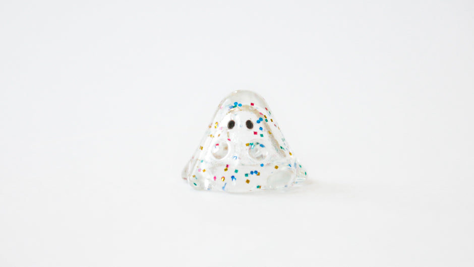 クリア成型のソフビにパラパラと5色の小さなラメがとじこめられています☆