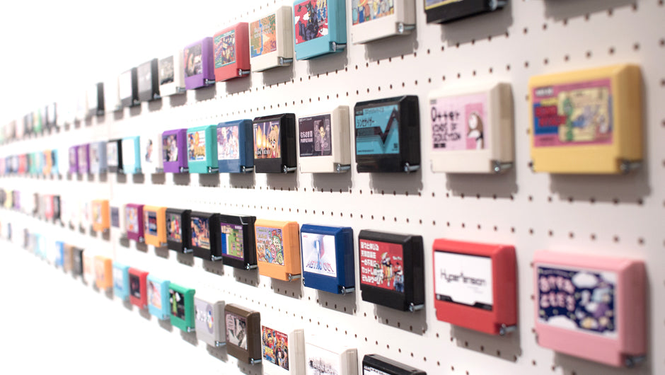 Each year, designers, videogame lovers and 80′s nostalgics worldwide are invited to submit their own 8 bit Famicom game. Sakagami prints all entries and pastes them on physical famicom cartridges to be exhibited at METEOR in Nakano until the end of May.
