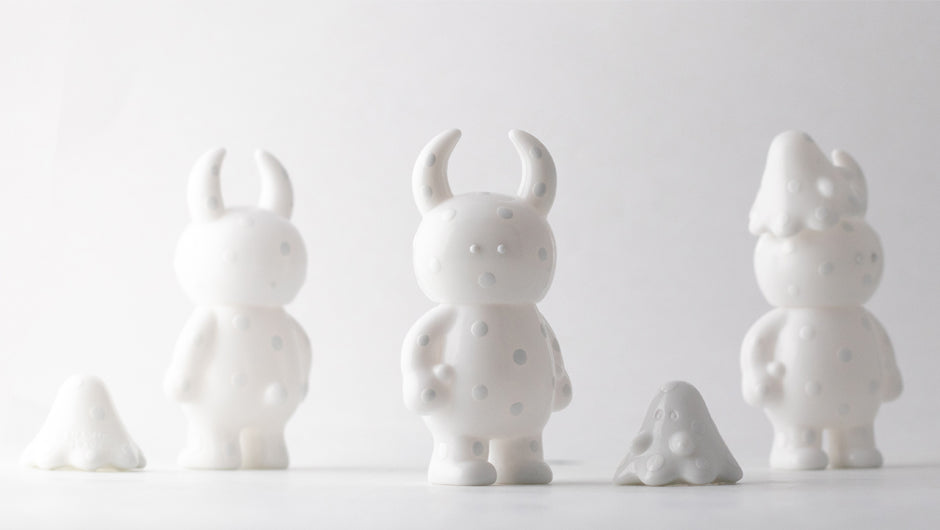 We also prepared a limited edition "White Dot UAMOU with Boo" that has white dots on the white body. All dots are hand-painted by Ayako Takagi. You can sense the shades and nuances created by the slight bumps and textural differences.