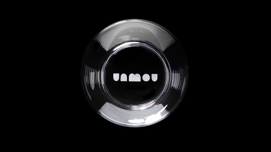 The Double Old Fashioned Glass features UAMOU and Boo as large as space permits. On the tumbler, medium-sized UAMOU and Boo are drawn alternately. Both have the UAMOU logo on the bottom.