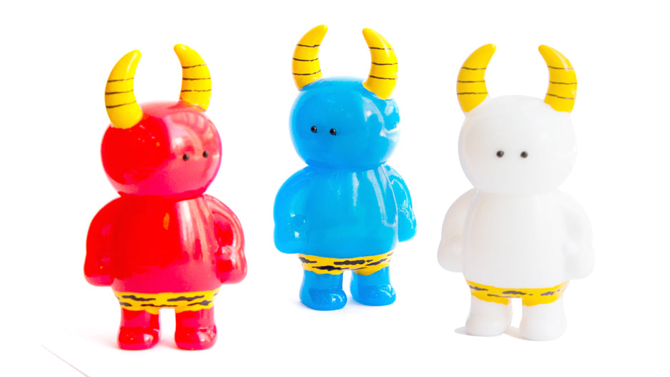 To celebrate the coming of spring we have prepared the 3rd series of ONI UAMOU. This year the Blue and Red Oni Uamou series have been mixed with a tiny bit of clear vinyl and are released alongside the all-new White Oni Uamou ! Carefully hand-painted by Ayako Takagi, the limited edition series of ONI UAMOU is very special indeed and will be available starting today in our Atelier Shop.