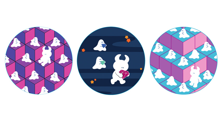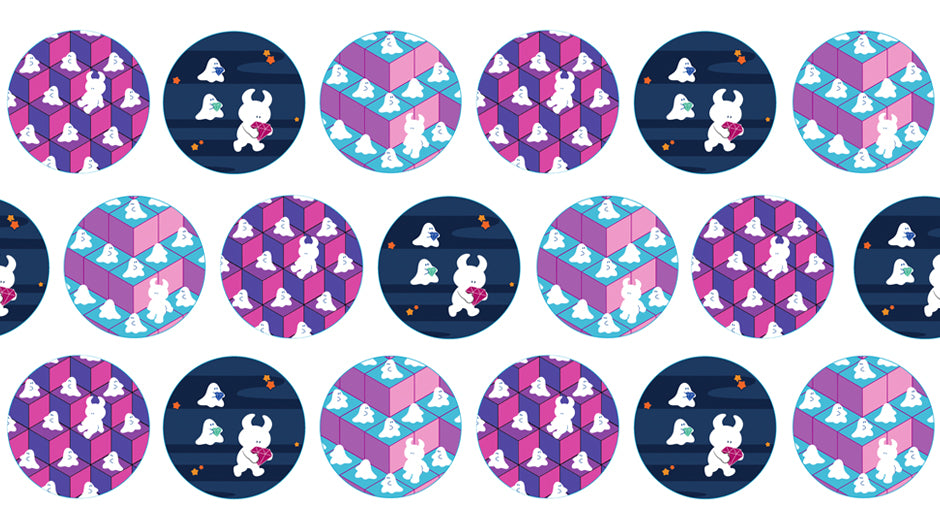 Playful patterns and bright colours accompany Uamou and Boo on their many encounters in this cute mini series.