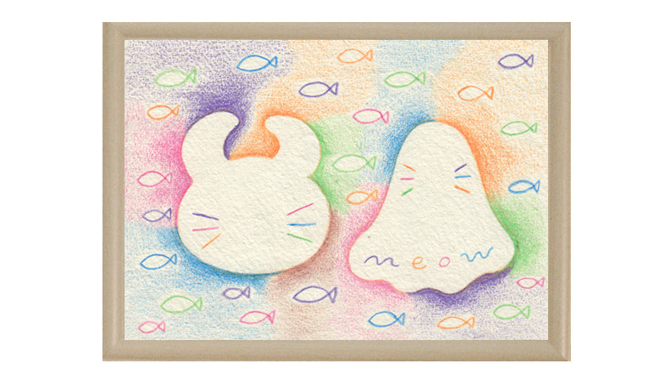 高木綾子の今までの作品には、これだけの「色」や「文字」を使った作品は少なく、今回のために挑戦し確立したとも言える新たなスタイルで描かれた作品が多く展示されております。高木綾子が表現するノスタルジーの世界を是非お楽しみください。