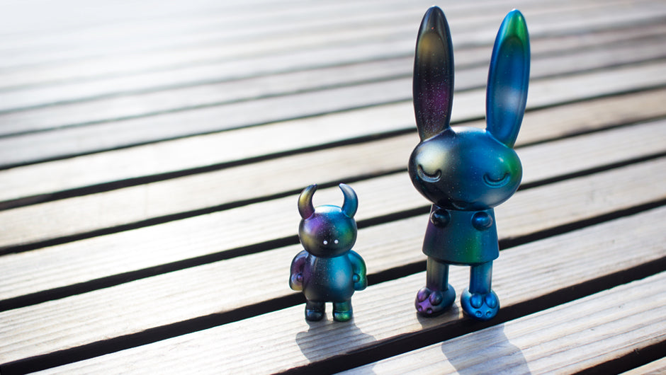 Peter Kato's Bedtime Bunnies are incredibly cute and endearing. Cluttermagazine will bring a variation of Bedtime Bunny customs to NYCC and we were asked to create a series of Galaxy Bedtime Bunny and Uamou sets.