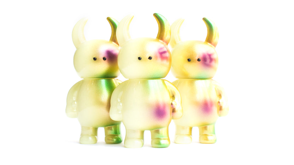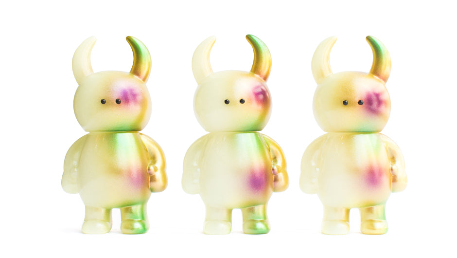 Reminiscent of the early cosmic series, this release of the half galaxy series features gold, pink and green touches on a GID body. Created in collaboration with My Plastic Heart and painted by Master Goto this will be the first GID release in the half Galaxy Collection.