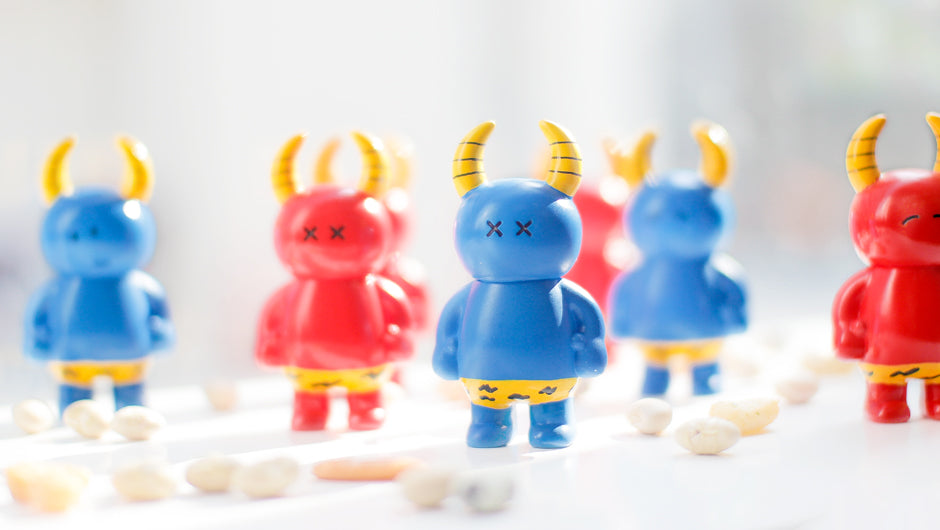 To celebrate the coming of spring we have released a specially prepared red and blue ONI UAMOU! Proposed by our friend Thor and carefully hand-painted by Ayako Takagi, the limited edition series of ONI UAMOU is very special indeed. We would like to thank all the people who have aqcuired ONI UAMOU and we are very happy to see that at least these harmless little demons have not been left outside!