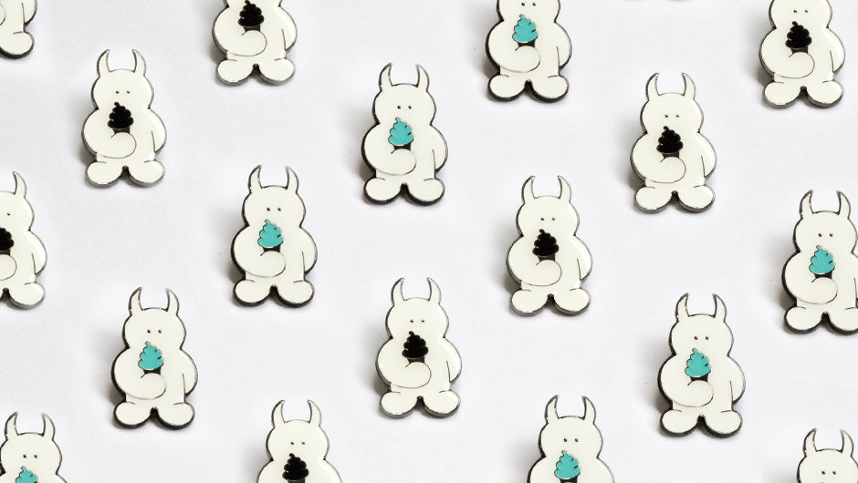 We have expanded our Ice Cream Uamou Pin Badge Series! Gold Pin Badges are available in the colours: Cherise Pink, Mint Green, White and Deep Saffron. Black Pin Badges feature the colours: Capri, White, Cherise Pink and Black. The Pin Badges are available in the Atelier shop right now and will be available in the online shop soon!
