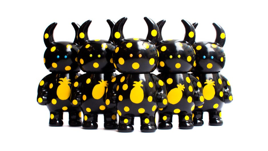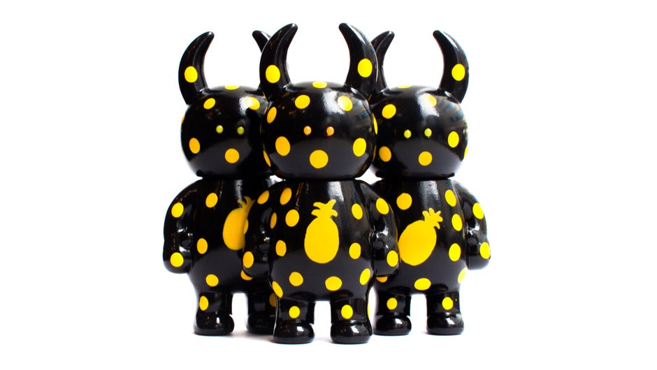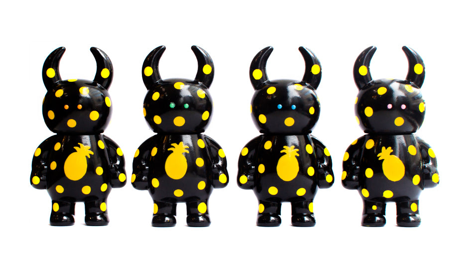 ブラックソフビ成型にイエローのドットが彩色され、お腹にはパイナップルのシルエット!